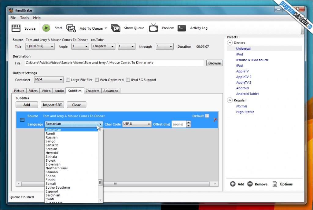 3. Salut, ma puteti ajuta va rog cu scrierea subtitrarii? Nu stiu cum sa aleg sa se vada si diacriticile cu acest handbrake cand fac un mp4. Multumesc mult.