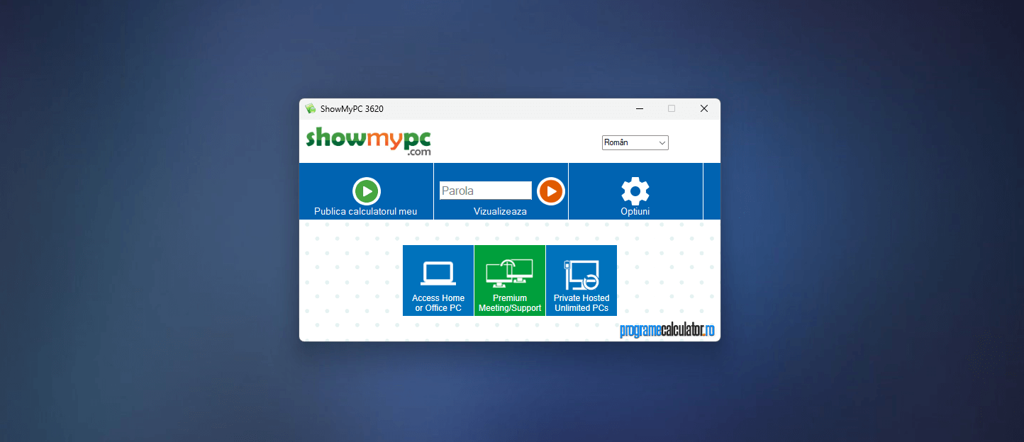 Pentru a te putea conecta la alt calculator folosind ShowMyPC Collaboration, atât tu, cât și proprietarul calculatorului la care vrei să te conectezi va trebui să descărcați și să rulați programul. După rulare, cel aflat în fața calculatorului la care vrei să te conectezi, va trebui să apese butonul „Publica calculatorul meu„: